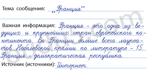 9. По заданию учебника подготовь сообщение о Франции или Великобритании. Воспользуйся планом описания страны, составленным с помощью книги "Энциклопедия путешествий. Страны мира" (с. 70 рабочей тетради).