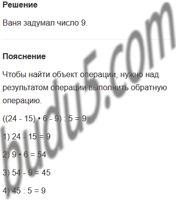 Задание № 85. Ваня задумал число, увеличил его в 5 раз, прибавил 9, разделил на 6, к результату прибавил 15 и получил 24. Какое число задумал Ваня?