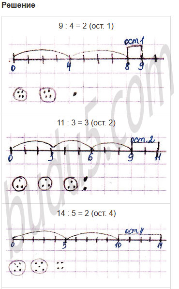 Задание № 86. Выполни деление с остатком на числовом луче и с помощью точек: