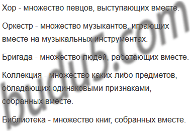 Назови множества, о которых можно сказать: хор, оркестр, бригада, класс, коллекция, библиотека.