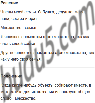 Задание № 5. Перечисли членов твоей семьи. Принадлежишь ли ты этому множеству? А твой друг?