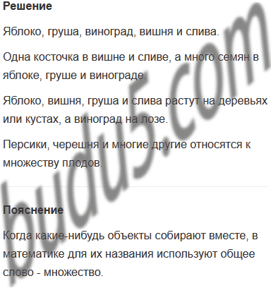 Задание № 9. На рисунке изображены некоторые элементы множества плодов. Назови их. В каких из этих плодов одно семечко или одна косточка, а в каких - много семян или косточек? Все ли плоды растут на деревьях? Какие ещё элементы множества плодов ты знаешь?