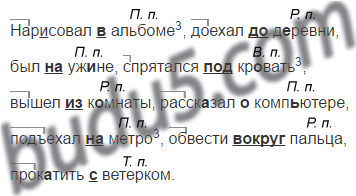 Обвести ... па́льца, нар..совал ... альбоме3, доехал ... д..ревни, был ... уж..не, спрятался ... кр..вать3, вышел ... к..мнаты, расск..зал ... комп..ютере, под...ехал ... метро3, прок..тить ... вет..рком.