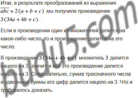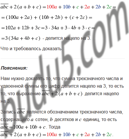 Докажите, что сумма трехзначного числа и удвоенной суммы его цифр делится нацело на 3.