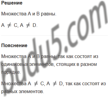 А = {0; 1; 2}. Какие из множеств А = {2; 0; 1}, С = {1; 0}, D = {3; 2; 1; 0} равны множеству А, а какие ему не равны?