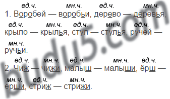 1. Воробей - воробьи,  дерево — ..., крыло — ..., стул — ..., ручей — ... .