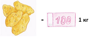 Овощевод продаёт картофель по 100 рублей за 1 кг. Чтобы купить лопату и тележку, овощеводу нужно продать 35 кг картофеля. Если он захочет купить 1 кг мяса, то ему для этого нужно продать 5 кг картофеля.