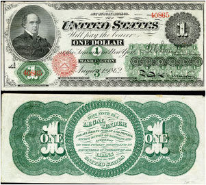 Один доллар США 1862 год – первая 1 – долларовая банкнота была выпущена во время президентства Авраама Линкольна в период Гражданской войны. На лицевой стороне был изображён министр финансов Салмон Чейз.