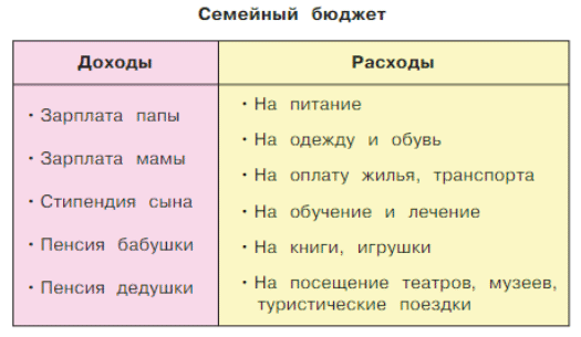 Пример семейного бюджета приведён в таблице. Проанализируй таблицу и объясни, как ведётся хозяйство семьи. При ответе используй и опыт своей семьи.