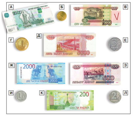6. Выберите на рисунке банкноту наименьшего номинала.