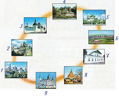 2. Приведи примеры достопримечательностей разных городов Золотого кольца.