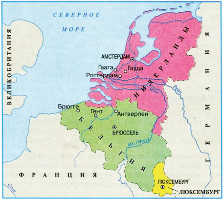 Бенилюкс – это союз трёх стран – соседок: Бельгии, Нидерландов, Люксембурга, которые находятся на северо – западе Европы. Название этого союза образовалось первыми слогами названия этих стран: Бе – Бельгия, ни – Нидерланды, люкс – Люксембург.
