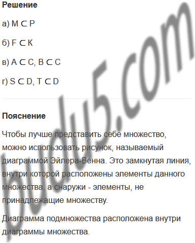 } является подмножеством другого. Докажи. Запиши с помощью знака и прочитай разными способами.