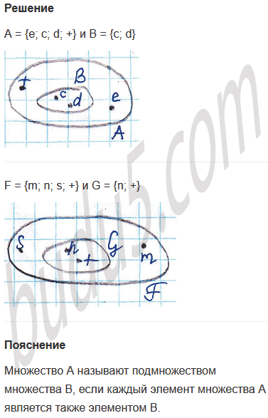 Задание № 4. Определи, какое из указанных двух множеств является подмножеством другого. Сделай записи и нарисуй диаграммы Эйлера-Венна.