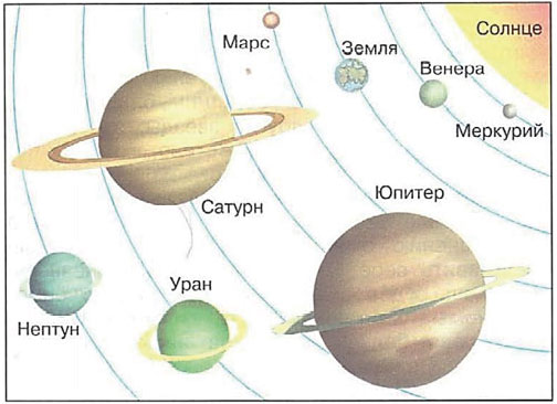 ► Рассматриваем схему на с. 7 или изготовленную нами модель Солнечной системы. С их помощью перечисляем планеты: а) в порядке увеличения их размеров; б) в порядке уменьшения их размеров. Проверяем себя на "Страничках для самопроверки".