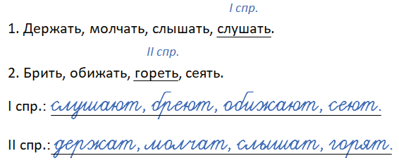 II спр.: держат, молчат, слышат, горят.
