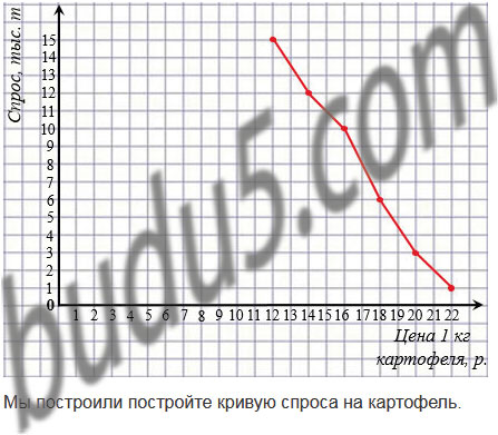 Представьте данные, приведенные в таблице, графически. Соединив полученные точки отрезками, постройте кривую спроса на картофель.