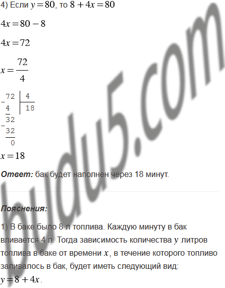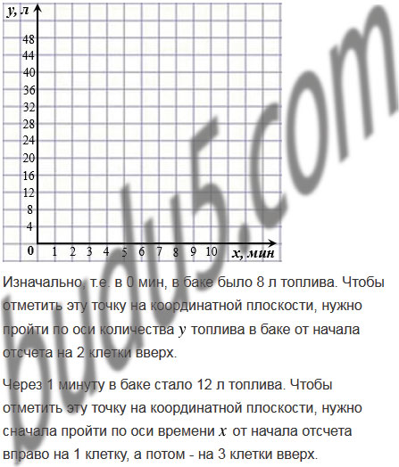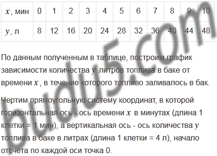 В баке было 8 л топлива. Каждую минуту в бак вливается 4 л.