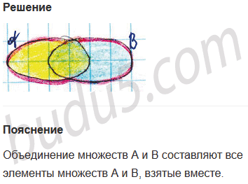 Как можно найти объединение множеств А и В, не рисуя диаграммы? Сделай вывод.