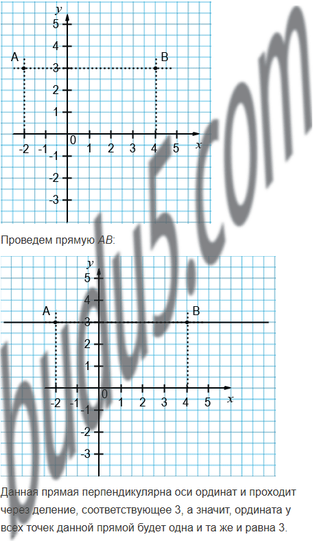 Постройте прямую, проходящую через точки А(2; 3) и В(4; 3). Чему равны ординаты точек этой прямой?