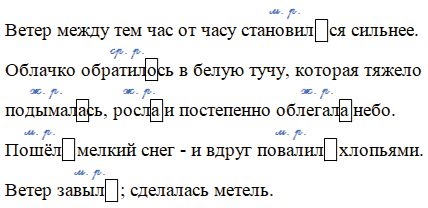 • Укажите над глаголами в формах прошедшего времени род. Выделите окончания глаголов.