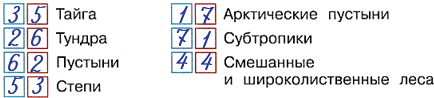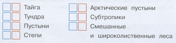 3. Пронумеруй основные природные зоны России в порядке их следования с севера на юг (в синих квадратиках) и с юга на север (в красных квадратиках). Проверь себя по тексту учебника.