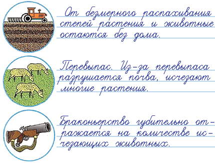 6. Думаем, какие экологические проблемы степной зоны выражены этими знаками. Формулируем и записываем.