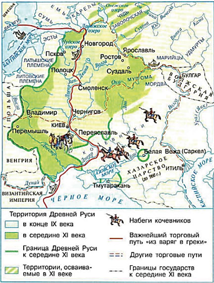 Найдите на карте (с. 41) территорию Древней Руси: а) в конце IX века;. б) в середине XI века. Сравните.