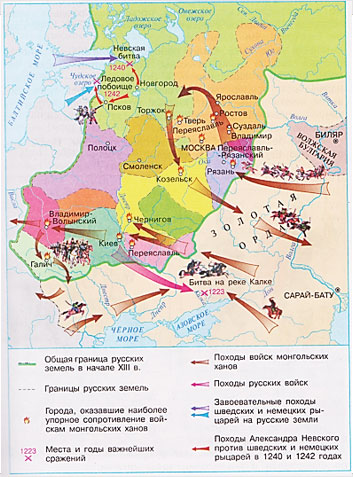 В северо – западной части Руси со стороны Балтийского моря мы видим направление нашествия шведских рыцарей.