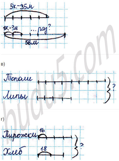 г) Саша купил 4 пирожка по 16 руб. и 2 буханки хлеба по 18 руб. Сколько денег заплатил он за всю покупку?