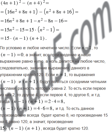 Докажите, что при любом нечётном значении значение выражения кратно 120.