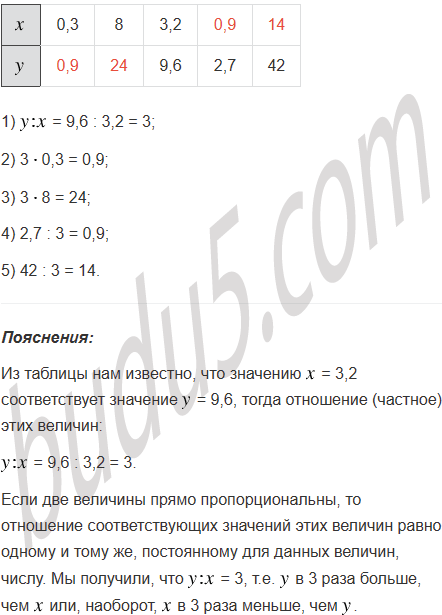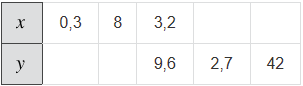 Заполните таблицу, если величина прямо пропорциональна величине .