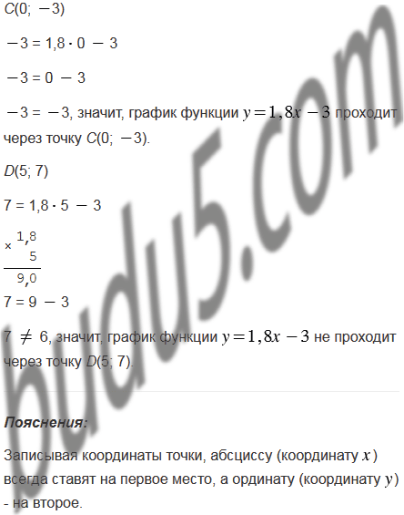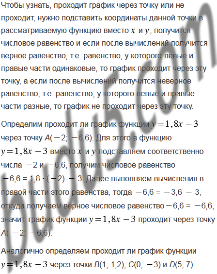 Не выполняя построения графика функции , определите, через какие из данных точек проходит этот график: А( 2; 6,6); В(1; 1,2); С(0; 3); D(5; 7).