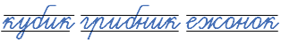 Объясним значения записанных слов: кубик - небольшой предмет в форме куба; грибник - человек, собирающий грибы; ежонок - детёныш ежа.