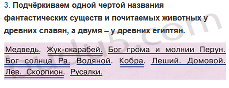 3. Подчеркни одной чертой названия фантастических существ и почитаемых животных у древних славян, а двумя – у древних египтян.