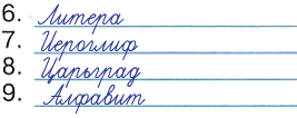 2. Мудрая Черепаха предлагает вам задание. Узнайте, как называется алфавит, созданный Кириллом и Мефодием. Разгадайте слова. Затем впишите первую букву каждого из слов в квадратики по порядку, и вы узнаете название этого алфавита.