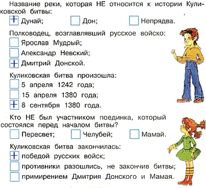 2. Серёжа и Надя предлагают вам задание. Выберите правильные ответы и отметьте их знаком "+".