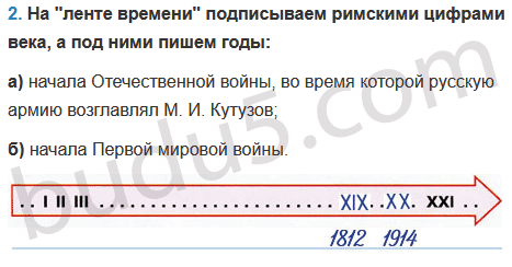 2. На "ленте времени" подпиши римскими цифрами века, а под ними напиши годы: