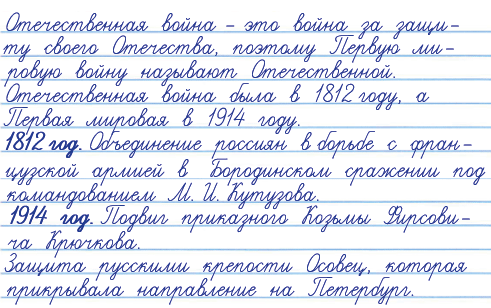 2. Первую мировую войну её современники в России называли Второй Отечественной. Объясни (устно), почему её считали Отечественной войной, а также почему она была Второй Отечественной. Приведи примеры патриотизма россиян в этих войнах.