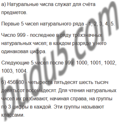 а) Для чего служат натуральные числа? Назови первые 5 чисел натурального ряда. Чем интересно число 999? Назови подряд следующие 5 чисел.