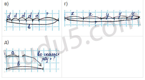 в) У Маши было b руб. Она купила 5 кексов по d руб. Сколько денег у неё осталось?