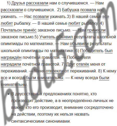 Образец: По телевидению ведущий программы «Прогноз погоды» сообщил о надвигающейся буре. — По телевидению сообщили о надвигающейся буре. Брат получил приглашение на соревнования. — Брата пригласили на соревнования.