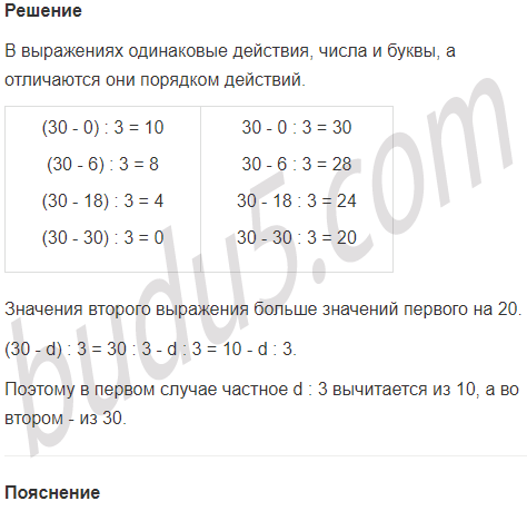 Прочитай эти выражения и найди их значения при d = 0, 6, 18, 30. Что ты замечаешь?