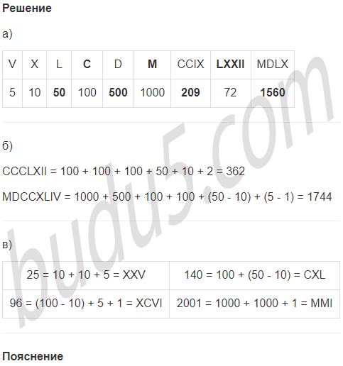 б) Запиши арабскими цифрами числа: СССLXII, MDDCCXLIV.