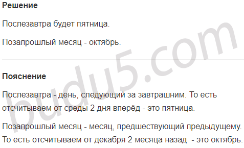 Задание № 10. Сегодня 10 декабря, среда. Какой день будет послезавтра? Как назывался позапрошлый месяц?