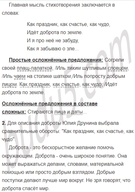 2. Подумайте, почему для описания доброты автор выбрал именно такие сравнительные обороты. Что такое, по-вашему, доброта? Изложите свои мысли в кратком эссе.