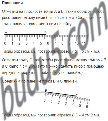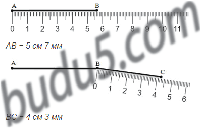 Начертите отрезки АВ и ВС, где АВ = 5 см 7 мм, ВС = 4 см 3 мм.