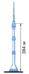 Останкинская телевизионная башня в Москве состоит из железобетонной опоры высотой 384 м и металлической части, которая короче этой опоры на 229 м. Найдите высоту телевизионной башни.