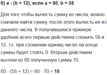 б) a - (b + 12), если a = 80, b = 58.