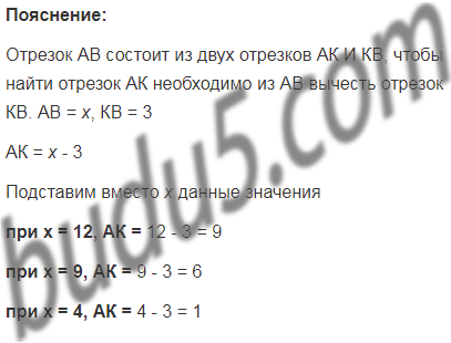 Точка К лежит на отрезке АВ. Найдите длину отрезка АК, если АВ = х см, КВ = 3 см. Составьте выражение и найдите его значение при х = 12; 9; 4.